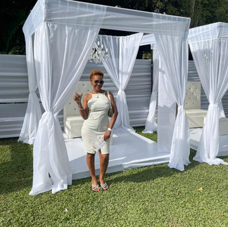 Finally, guests were guided towards the top of the venue where partying then began. This area was designed with luxe white cabanas, each bearing a crystalline chandelier for comfort and entertainment with butler-style meals being served to guests as they enjoyed the Le Champ Brunch Guided Experience. As the music intensified and the vibe elevated, stage sparks went off in full dramatic effect throughout the evening and the event was closed with a 3 minute fireworks show to end what will remain the most magical brunch event to ever hit Jamaica!